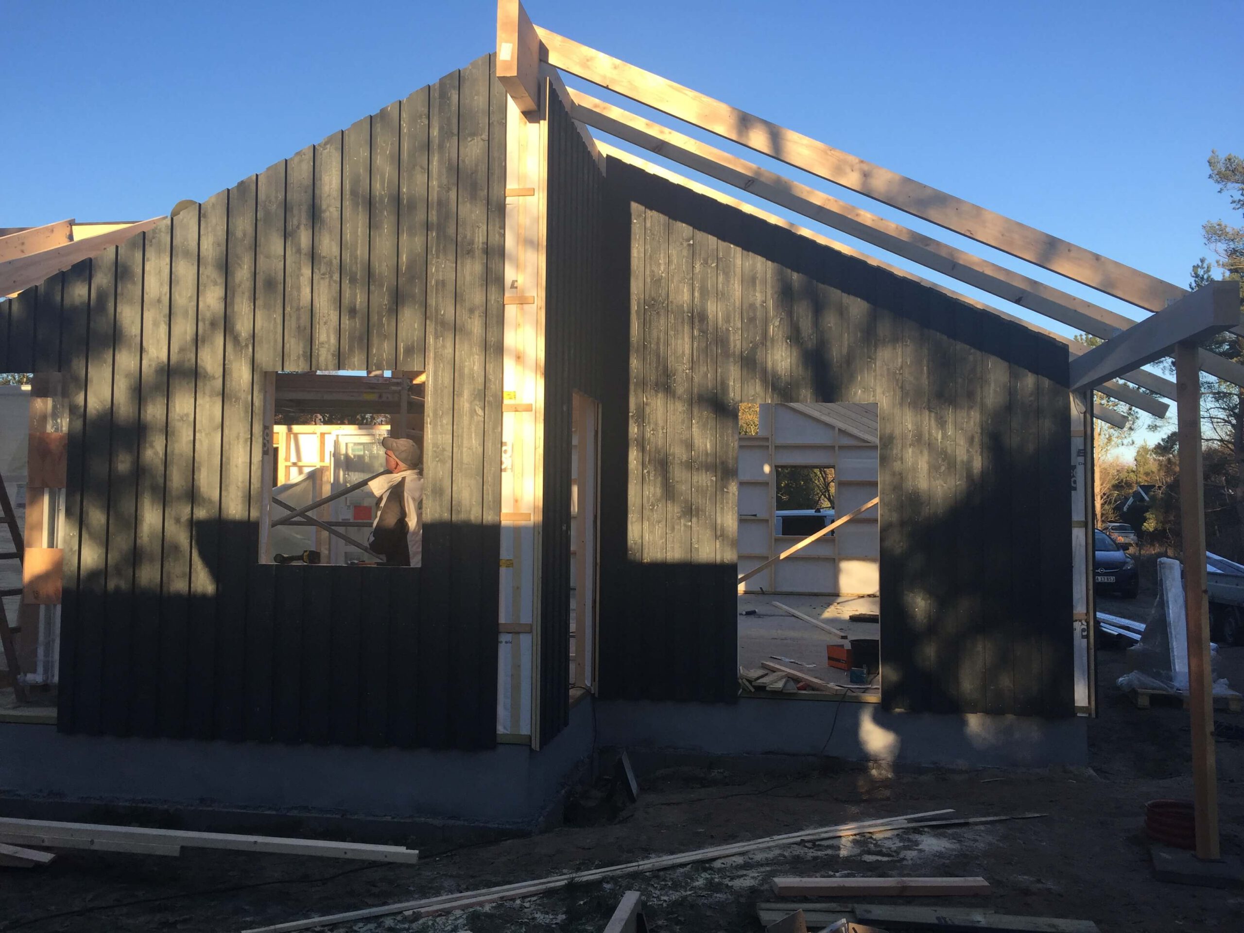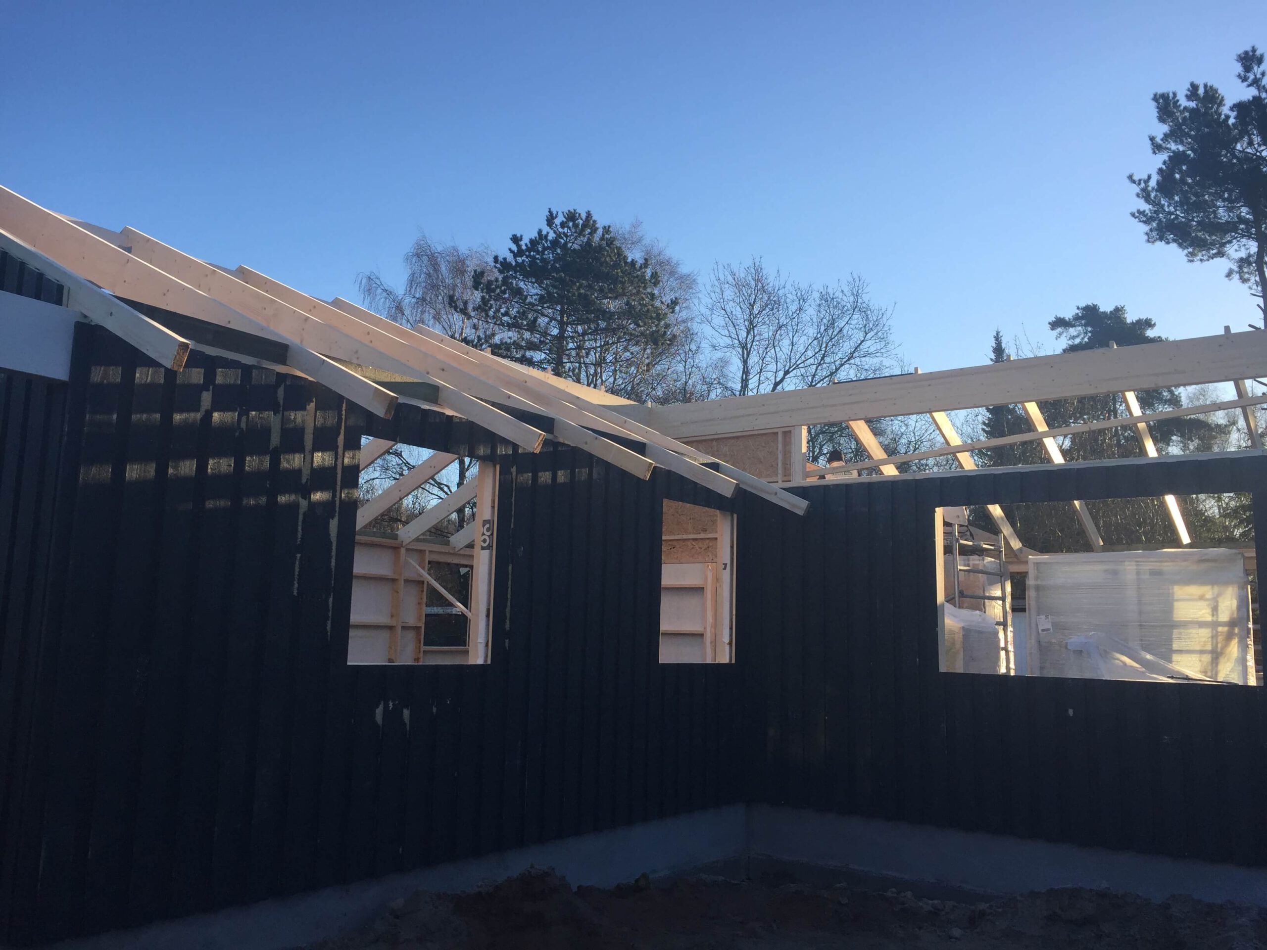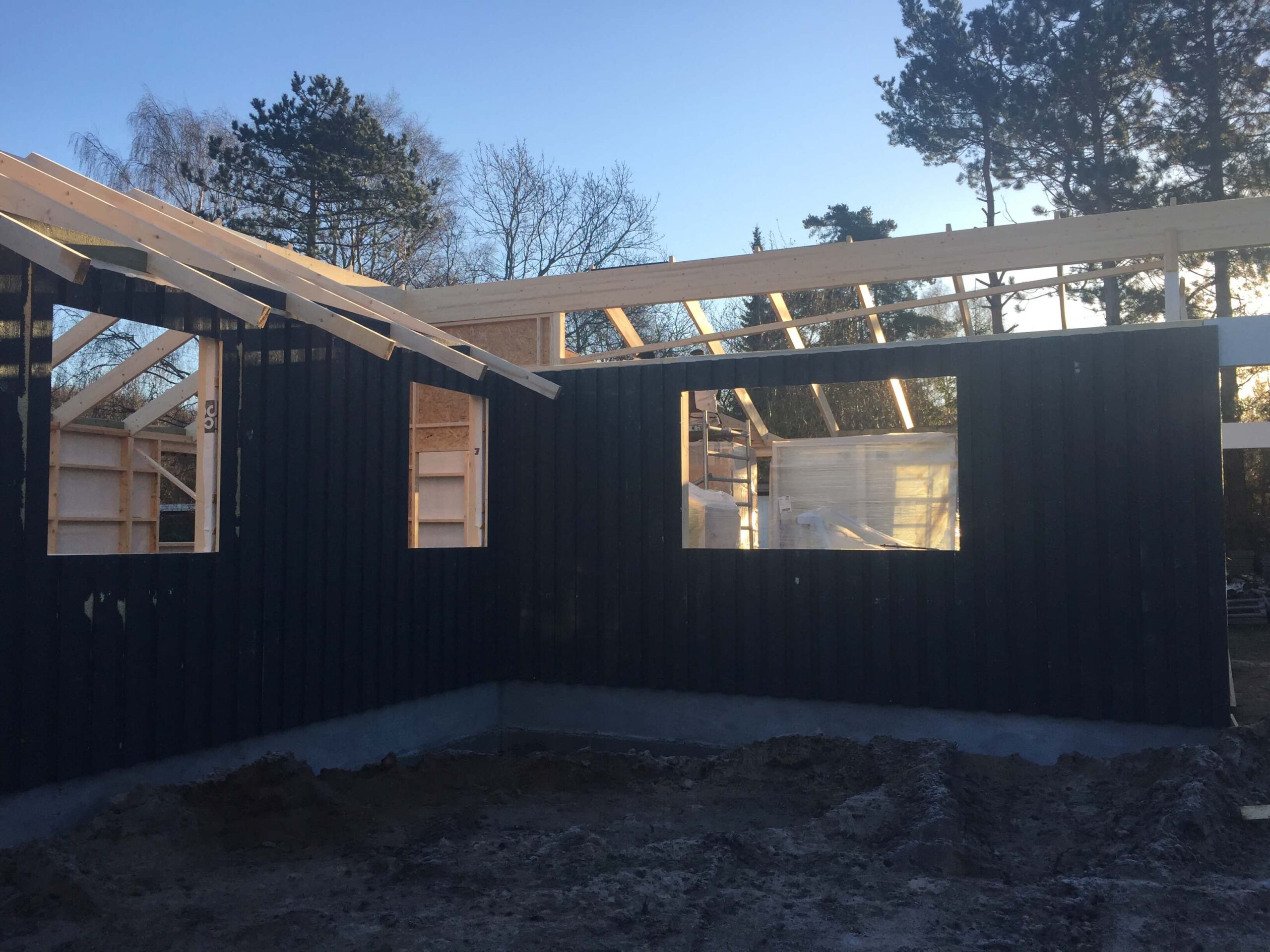 Sommerhus i Kalundborg opført i sort træbeklædning med lyse detaljer og store vinduespartier, der sikrer masser af lys og udsigt til naturen. Et moderne fritidshus med fokus på kvalitet, funktionalitet og et harmonisk samspil med omgivelserne.
